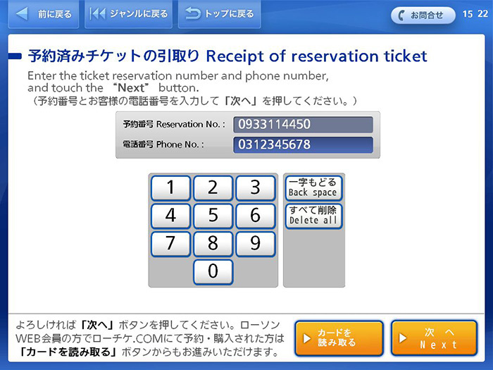 4. 예약번호와 전화번호를 입력하고 이름(히라가나)을 입력한다.