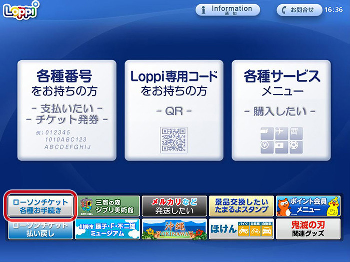 2. 왼쪽 아래에 있는 「ローソンチケット各種手続き」를 터치한다.