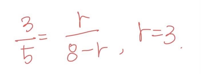 $\displaystyle \sin(\alpha)=\frac{r}{8-r}$이므로 $r=3$이다.