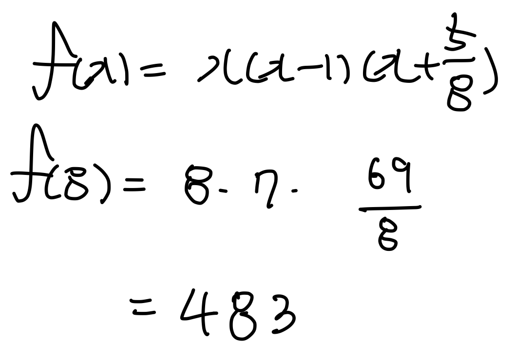 $$\displaystyle f(8)=8\times7\times\frac{69}8=483$$